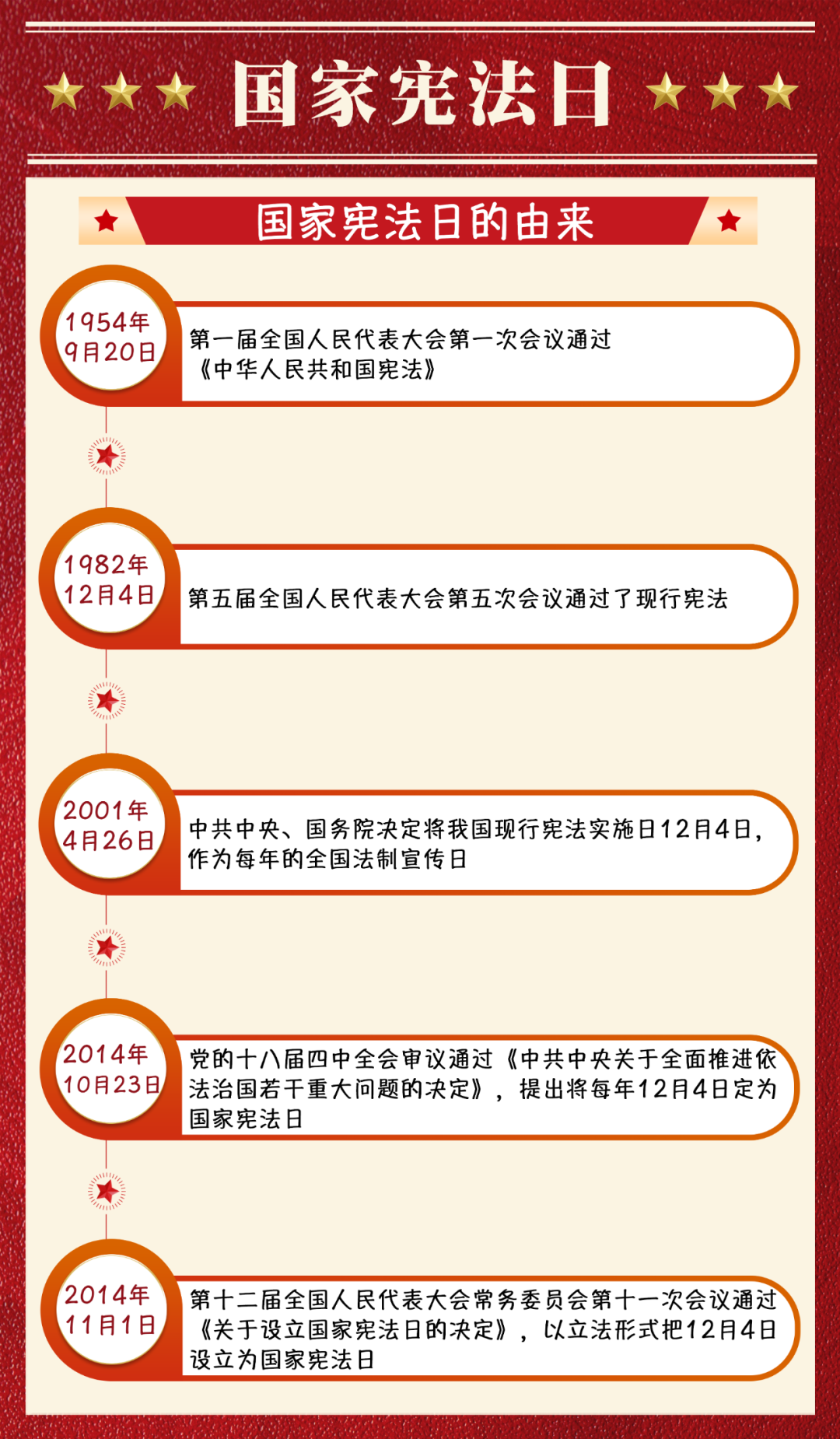 2014年11月1日,第十二屆全國人民代表大會(huì)常務(wù)委員會(huì)第十一次會(huì)議通過《關(guān)于設(shè)立國家憲法日的決定》,以立法形式把12月4日設(shè)立為國家憲法日。