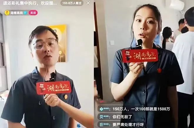5月8日,湖南省高級(jí)人民法院的官方抖音賬號(hào)“湖南高院”開(kāi)啟了“退還彩禮”集中執(zhí)行直播,引發(fā)網(wǎng)民圍觀。負(fù)責(zé)此次案件集中執(zhí)行的是寧鄉(xiāng)市人民法院執(zhí)行局。直播中,執(zhí)行人員化身主播解說(shuō)退還彩禮的執(zhí)行案件,并實(shí)時(shí)回答網(wǎng)民提問(wèn),直播間熱度一度達(dá)到274萬(wàn)人(次)。多數(shù)網(wǎng)民對(duì)此次活動(dòng)表示支持,認(rèn)為相關(guān)形式值得推廣。