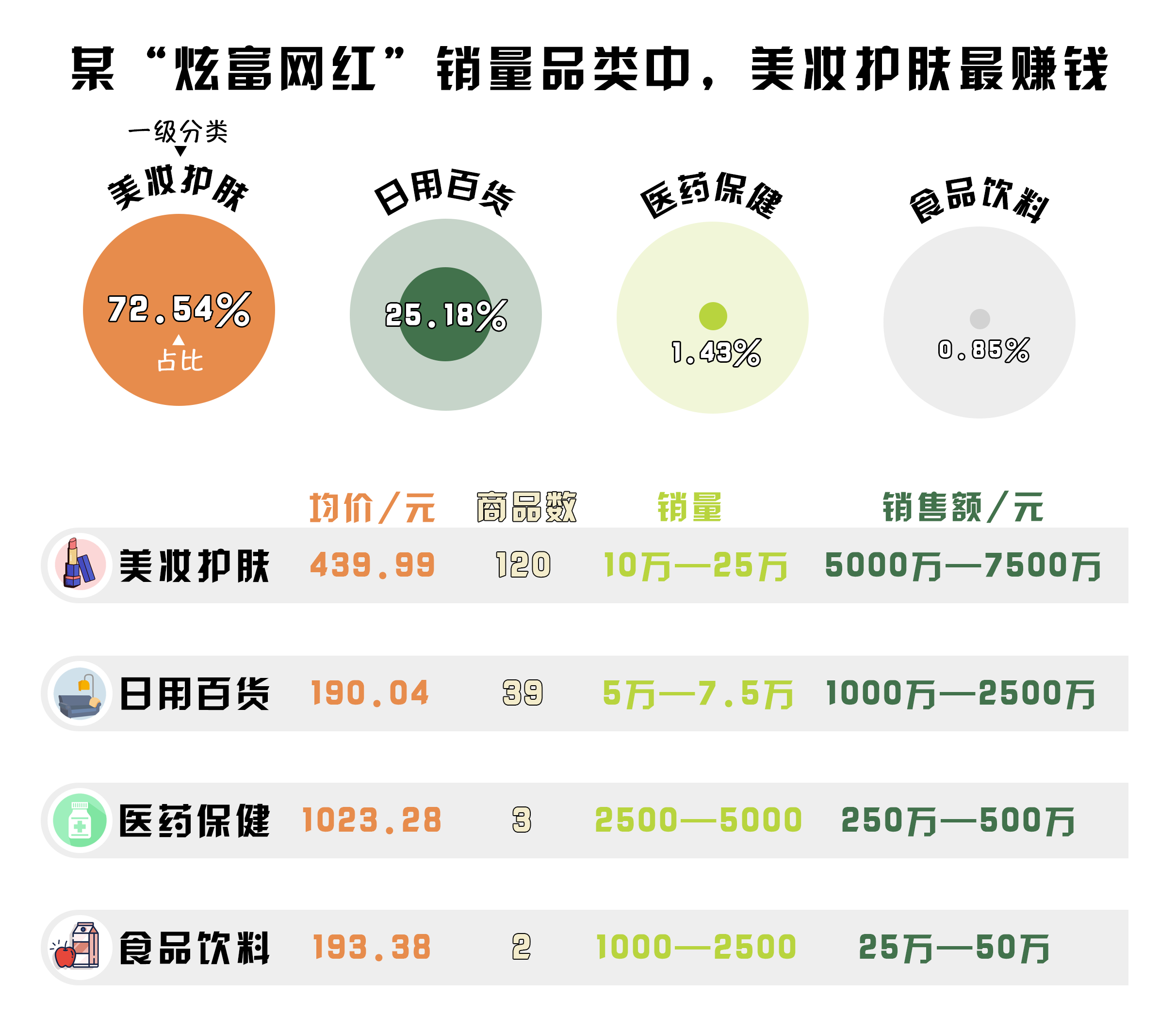 2.“炫富網(wǎng)紅”帶貨品類中,美妝護(hù)膚最賺錢