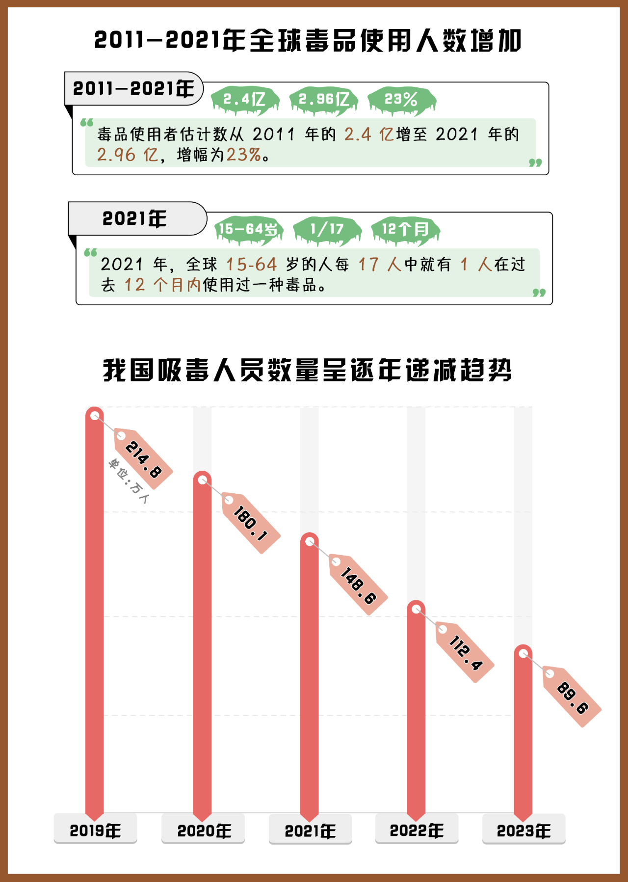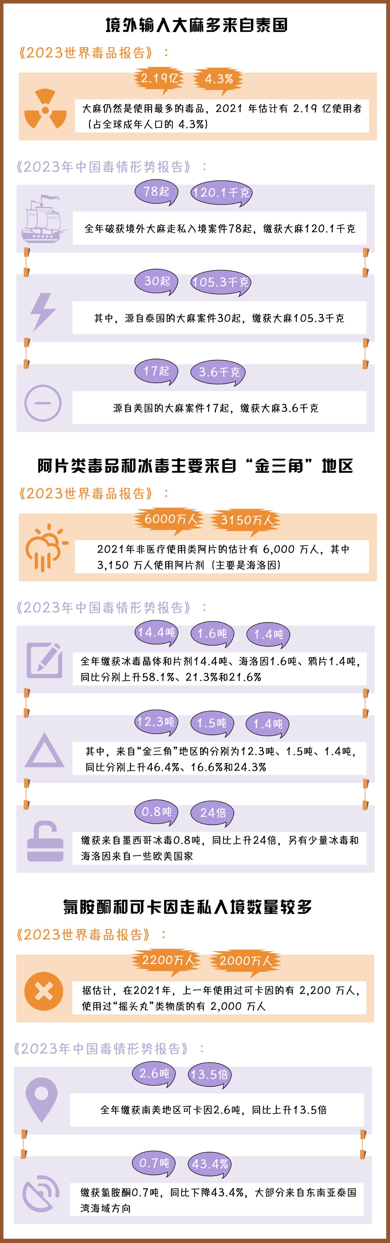 (制作:法治網(wǎng)輿情中心 數(shù)據(jù)來源:《2023年世界毒品報告》《2023年中國毒情形勢報告》)
