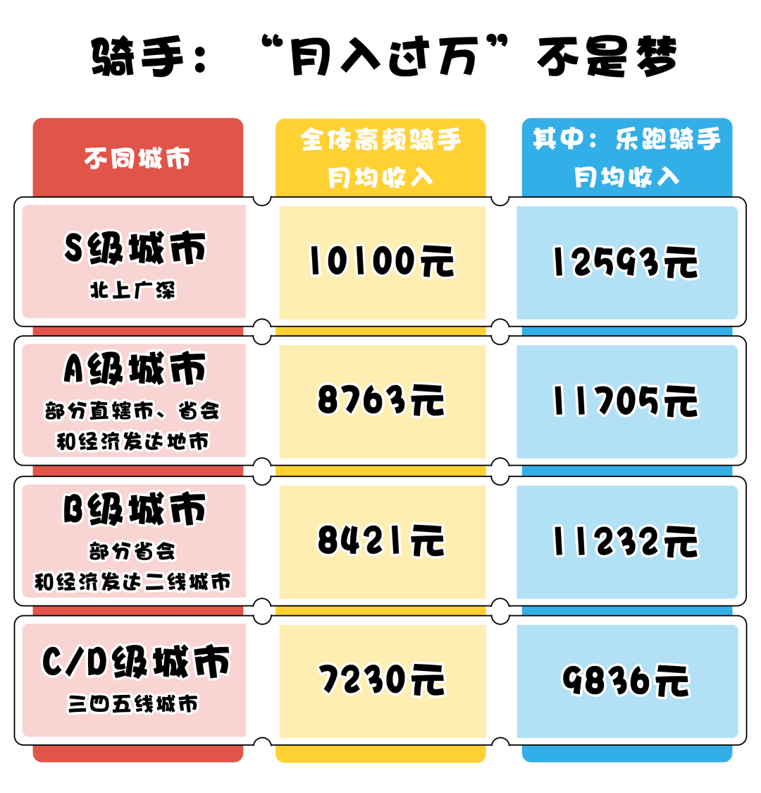 某外賣平臺(tái)2025年第一季度財(cái)報(bào)數(shù)據(jù)顯示,全國高頻騎手月均收入?yún)^(qū)間為7230元至10100元。在北上廣深等城市,技能更熟練的樂跑騎手收入優(yōu)勢(shì)更為明顯,月均可達(dá)12593元。