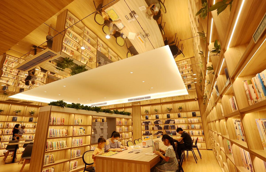 8月6日,讀者在浙江省德清縣禹越鎮(zhèn)禹悅書房靜心閱覽。德清縣于2021年實(shí)施“農(nóng)家書屋+新華書店”管理模式,將文化惠民觸角延伸至基層一線,全縣已建成60多個(gè)鄉(xiāng)村悅讀悅享書房,開展100多場(chǎng)線上線下文化活動(dòng)。