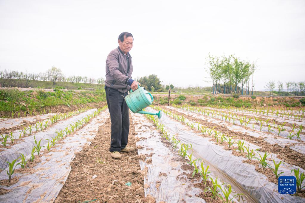 3月29日,在諸暨市楓橋鎮(zhèn)杜黃新村的農(nóng)耕體驗(yàn)研學(xué)基地,村民為新苗澆水。記者 江漢 攝