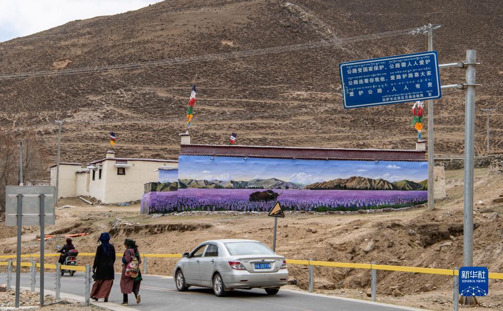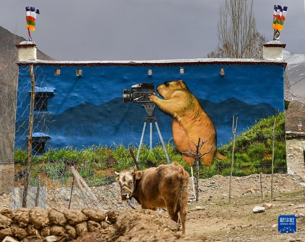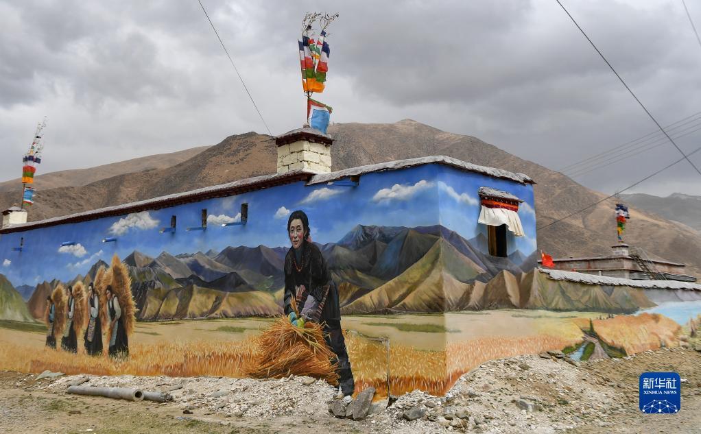 這是4月10日在拉薩市達(dá)孜區(qū)章多鄉(xiāng)恰村拍攝的墻畫。記者 晉美多吉 攝