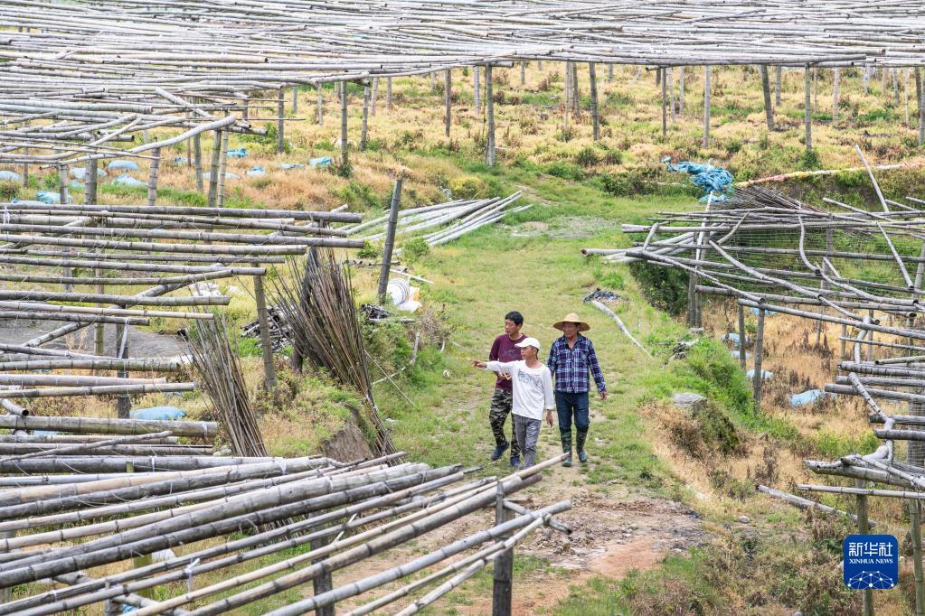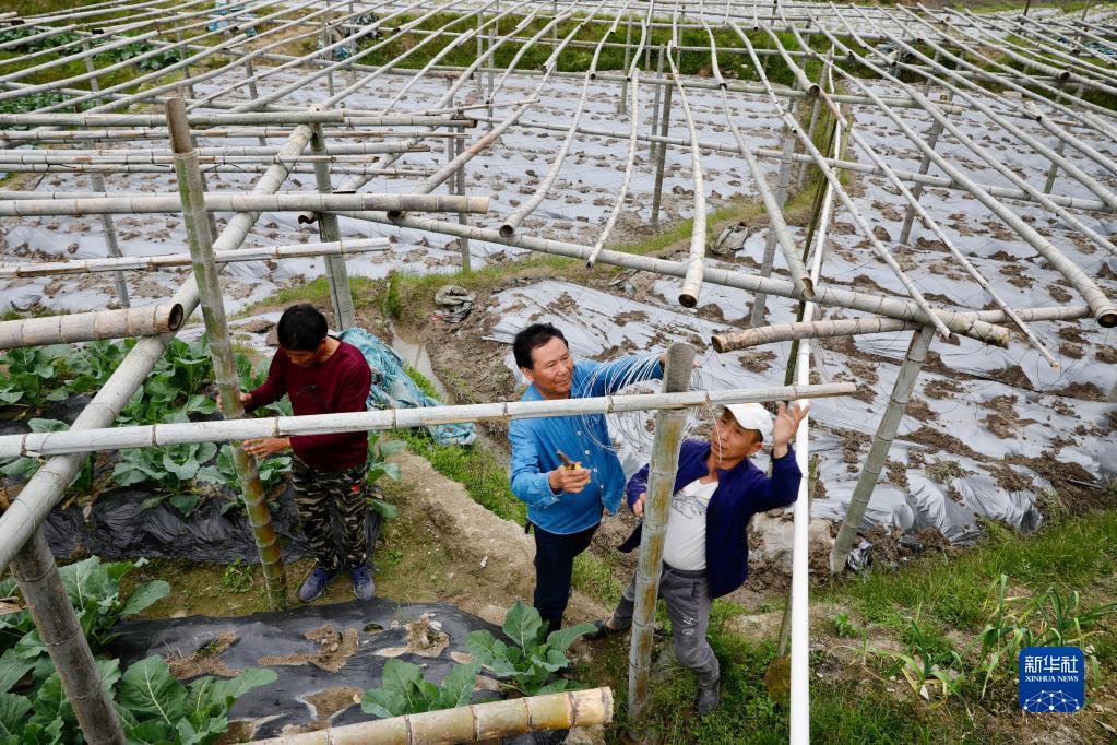 4月18日,在大湖鄉(xiāng)東姚村湖東果蔬農(nóng)民專業(yè)合作社種植基地,村民在搭建種植棚。記者 姜克紅 攝