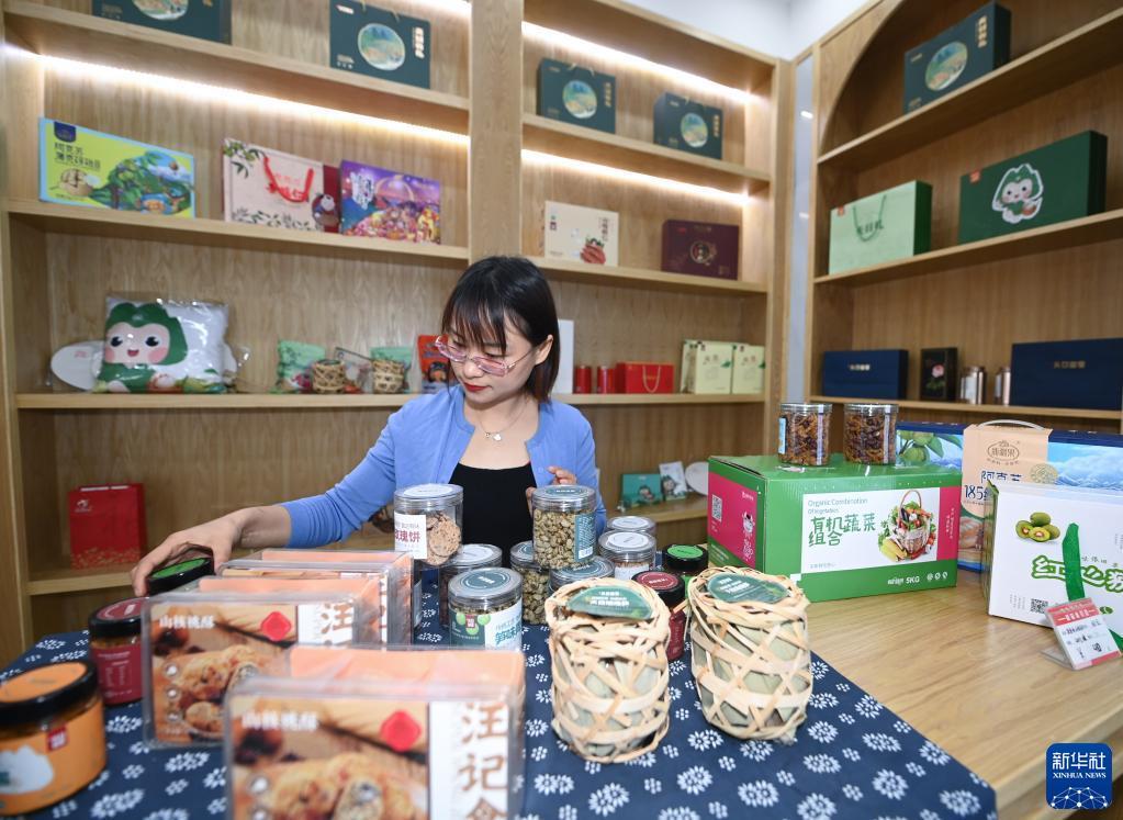 4月20日,在昌化鎮(zhèn)白牛村,青年創(chuàng)客張青整理要進(jìn)行直播銷(xiāo)售的特色農(nóng)產(chǎn)品。記者 徐昱 攝