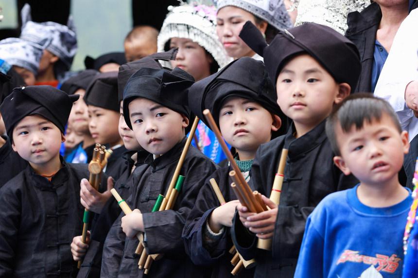 4月22日,新民村苗族小朋友參加高雍苗族“三月三”。
