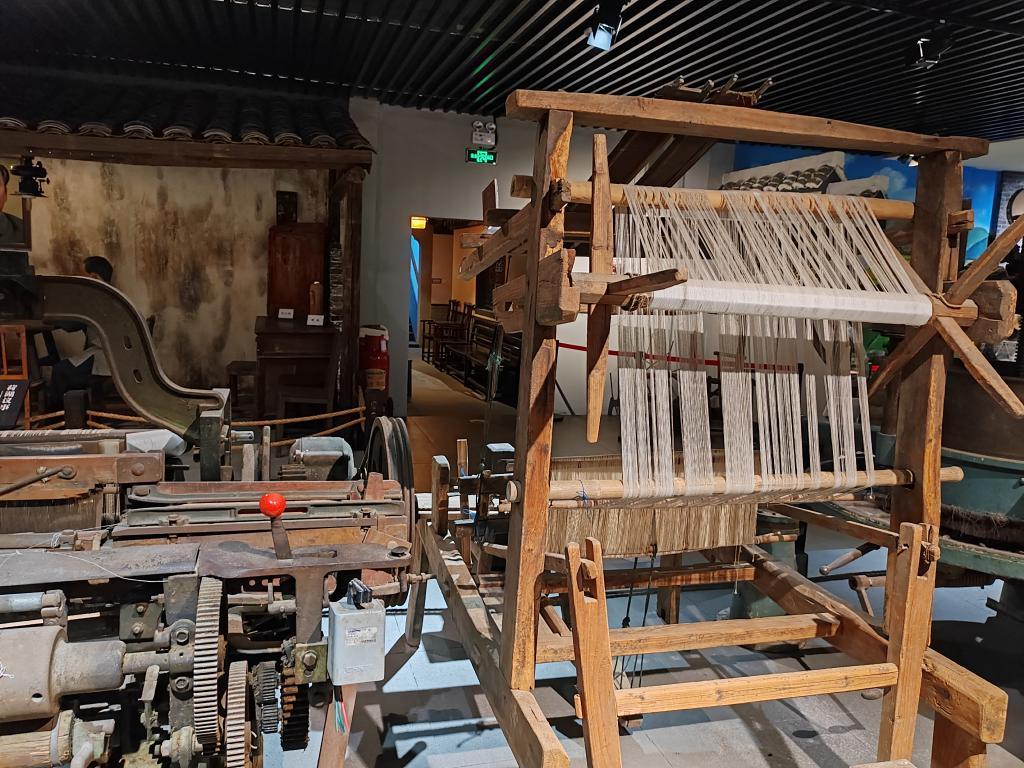荷湖鄉(xiāng)土文化博物館里展示的手工織機(jī)和鄉(xiāng)鎮(zhèn)企業(yè)用過的紡織機(jī)器。記者 馮源 攝