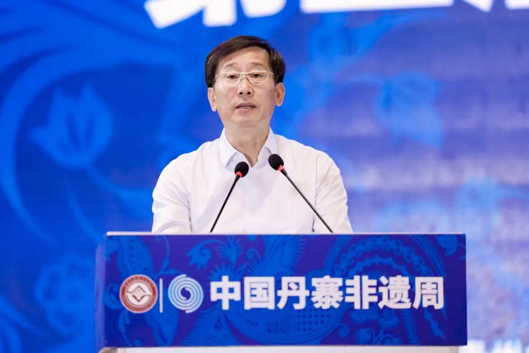 7月21日晚,第三屆中國丹寨非遺周在貴州省黔東南州丹寨縣丹寨萬達(dá)小鎮(zhèn)開幕。全國人大教科文衛(wèi)委員會主任委員、文化和旅游部原黨組書記、部長雒樹剛出席。文化和旅游部副部長饒權(quán)講話。中國非物質(zhì)文化遺產(chǎn)保護(hù)協(xié)會會長王曉峰,貴州省人大常委會副主任、省總工會主席桑維亮,萬達(dá)集團(tuán)總裁齊界致辭。貴州省人大常委會黨組成員于杰,貴州省委宣傳部副部長、省文化和旅游廳廳長孫含欣,州委書記、州長安九熊,州人大常委會主任湯越強(qiáng),州政協(xié)主席潘玉鳳,州領(lǐng)導(dǎo)譚海、崔鵬、龍黔清、王建華,亞洲財(cái)富論壇執(zhí)行主席、秘書長韓劍鋒出席開幕式。中國非物質(zhì)文化遺產(chǎn)保護(hù)協(xié)會副會長兼秘書長張雅芳主持開幕式。