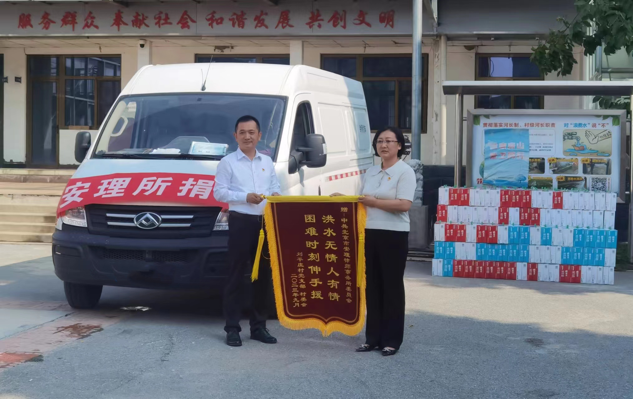 9月1日,中共北京市安理律師事務(wù)所委員會(huì)(簡(jiǎn)稱“安理黨委”)副書(shū)記、管委會(huì)委員李學(xué)輝,黨委委員張大軍、楊博,管委會(huì)秘書(shū)陳琛,黨務(wù)文秘喬雪一行前往北京市房山區(qū)竇店鎮(zhèn)劉平莊村捐物慰問(wèn)受災(zāi)群眾,助力房山災(zāi)后重建工作。房山區(qū)竇店鎮(zhèn)劉平莊村黨支部書(shū)記王春代表村兩委班子接受捐贈(zèng)。房山區(qū)司法局黨組成員、副局長(zhǎng)溫興善,房山區(qū)律師協(xié)會(huì)會(huì)長(zhǎng)黃科,房山區(qū)律師協(xié)會(huì)秘書(shū)長(zhǎng)王恩存一同參加了捐贈(zèng)活動(dòng)。