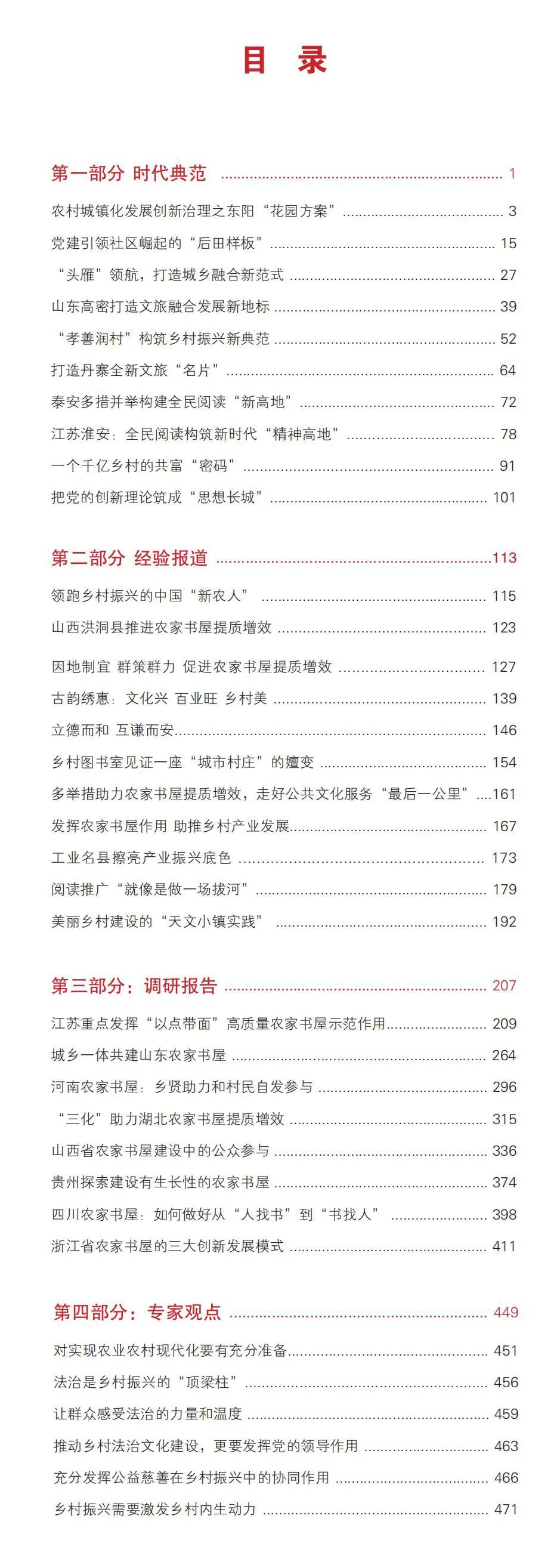 該書圖文并茂,由“時代典范”“經(jīng)驗報道”“調(diào)研報告”“專家觀點”四個部分組成,作品“沾泥土帶露珠”,共計32萬字。透過該書,讀者能看到各地是如何與時俱進創(chuàng)新發(fā)展農(nóng)家書屋、為鄉(xiāng)村振興提供“智慧屋”“充電樁”的;又是如何因地制宜、多措并舉大力發(fā)展產(chǎn)業(yè)經(jīng)濟的;還能看到各地如何凝聚農(nóng)民群眾的力量、壯大人才隊伍,使其在鄉(xiāng)村振興中大顯身手……