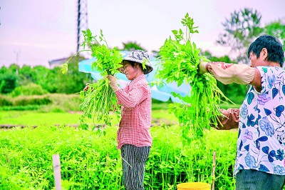 萬石鎮(zhèn)后洪村村民收夏芹 錢立峰 攝