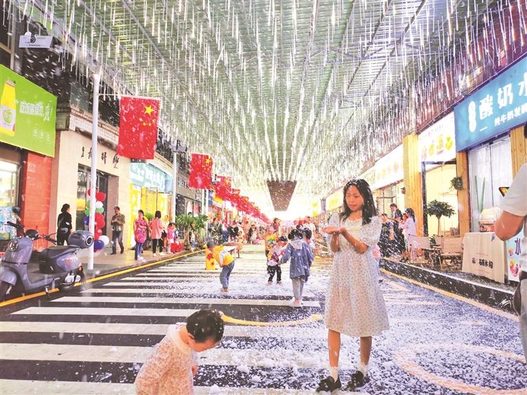 這是一個曾經(jīng)門可羅雀的小區(qū)商區(qū),建在一個低矮的斜坡上。以前,車輛亂停亂放,環(huán)境臟亂差,一排排門面成為閑置資產(chǎn)。去年夏天,為緩解城北奢香古鎮(zhèn)夜間經(jīng)濟人客爆滿的壓力,同時發(fā)展地攤經(jīng)濟增加居民就業(yè),紅旗街道利用這批閑置門面,投入150萬元打造夜間燈光秀和進行墻體文化建設,成功改造為豆干美食一條街,收到了立竿見影的效果。