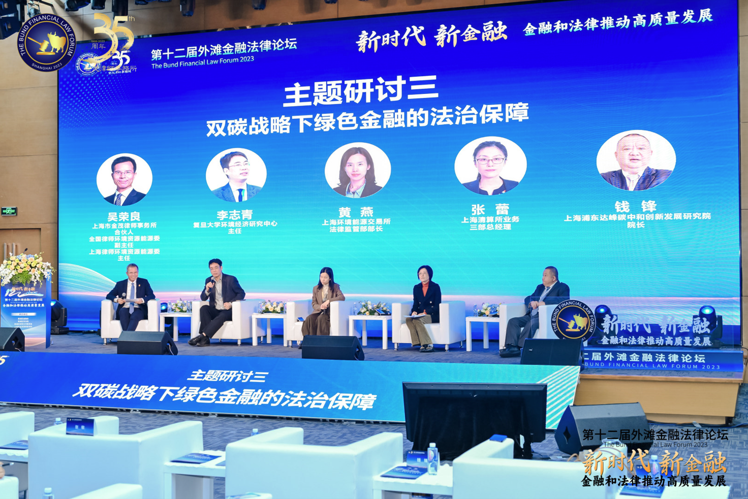 “雙碳戰(zhàn)略下綠色金融的法治保障”主題研討環(huán)節(jié),由上海市金茂律師事務(wù)所合伙人吳榮良律師主持,來自復(fù)旦大學(xué)綠色金融研究中心的李志青教授、上海環(huán)境能源交易所法律監(jiān)管部黃燕部長、上海清算所業(yè)務(wù)三部張蕾總經(jīng)理、上海浦東達(dá)峰碳中和創(chuàng)新發(fā)展研究院錢鋒院長共同參與研討。