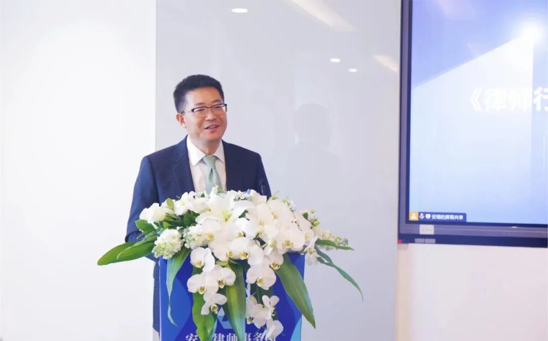 安理管委會(huì)主任孟冰律師代表安理進(jìn)行開營致辭。他談到,安理高度重視青年律師培養(yǎng),安理青訓(xùn)營也秉持助力行業(yè)協(xié)同發(fā)展的初衷而不斷完善升級(jí)。希望大家都能認(rèn)真學(xué)習(xí),有所收獲。