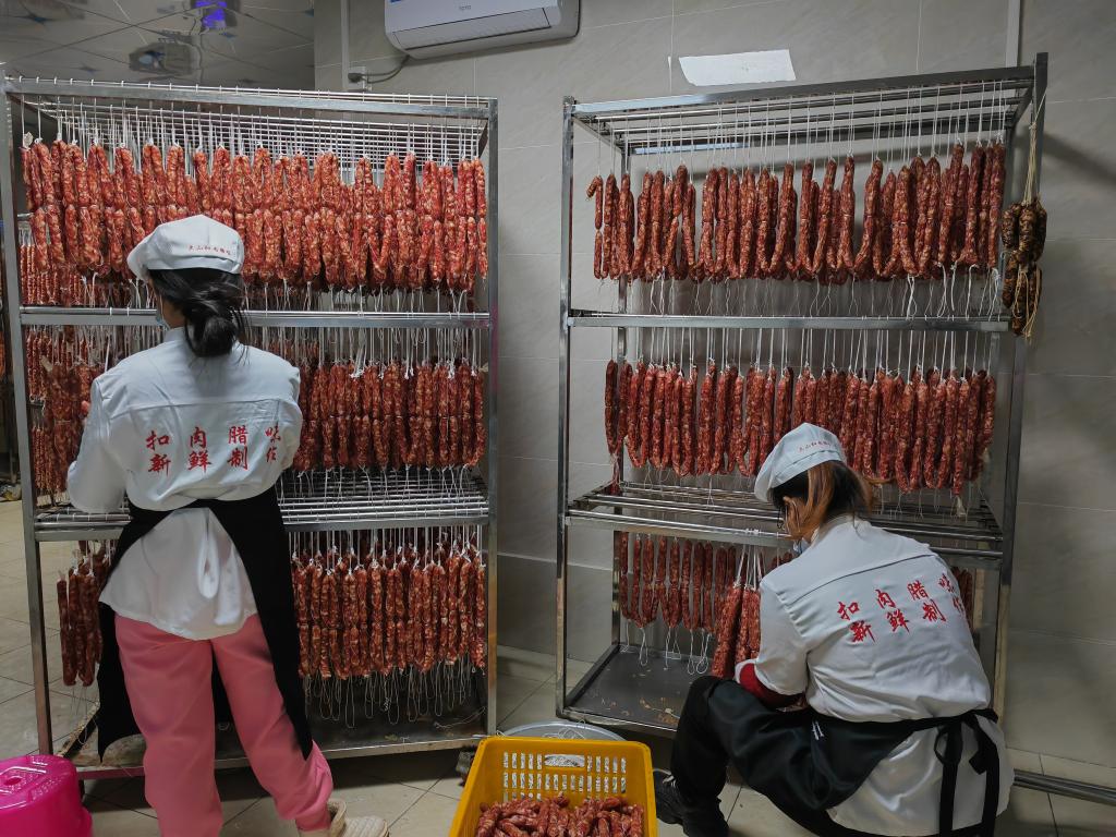 做好土特產(chǎn)文章,發(fā)展特色產(chǎn)業(yè)是實現(xiàn)鄉(xiāng)村振興的一條重要途徑。在陸川縣,當(dāng)?shù)貒@國家地理標(biāo)志產(chǎn)品陸川豬不斷助推村民致富增收。切割、生產(chǎn)、烘干、包裝……在位于陸川縣珊羅鎮(zhèn)大山村的玉林市浚淇食品有限公司,工人們正忙著生產(chǎn)和包裝臘腸?!澳觋P(guān)將至,臘肉、臘腸、扣肉的生產(chǎn)也迎來旺季。”公司負(fù)責(zé)人梁滬芳說。