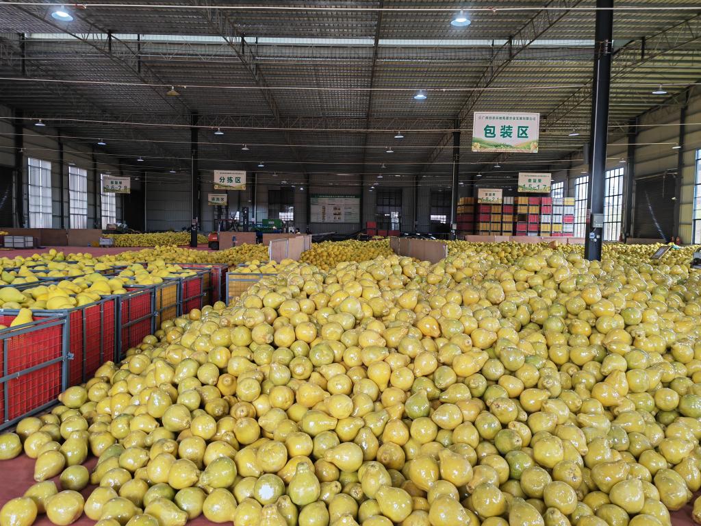 記者在廣西容縣萬畝沙田柚種植有限公司的種植基地看到,上千畝沙田柚果樹生長正旺。在倉儲物流車間,摘下來的沙田柚經(jīng)過自動化清洗、篩選,最后由工作人員裝箱打包,郵寄到全國各地?!拔覀兘衲晟程镨之a(chǎn)量有400多萬斤,價格不錯,我們通過線上、線下的模式進行銷售,如今賣了300多萬斤?!惫矩?fù)責(zé)人彭遠說,基地每天需要400人做工,優(yōu)先雇傭本地村民,持續(xù)發(fā)揮聯(lián)農(nóng)帶農(nóng)作用。