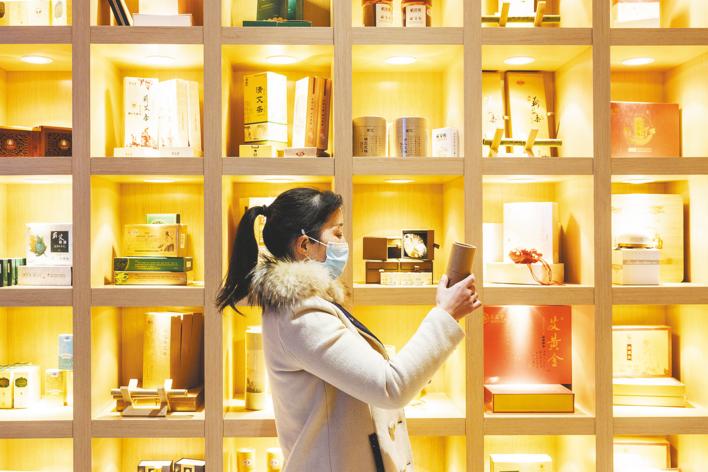 作為茶葉大省,湖北茶品類最為齊全,赤壁青磚茶、宜昌宜紅茶、恩施玉露均有著深厚的歷史淵源。在赤壁青磚茶館,“老古董”有了“新味道”。工作人員現(xiàn)場(chǎng)用青磚茶制作新式奶茶,口感清爽又細(xì)膩。