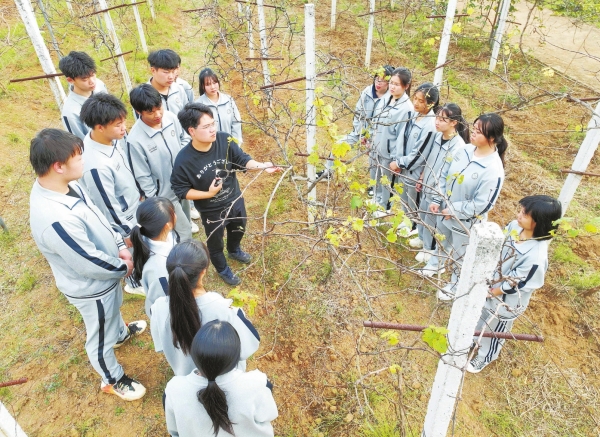 永州工貿(mào)學(xué)校,學(xué)生在學(xué)習(xí)葡萄剪枝技能(資料照片)通訊員 攝
