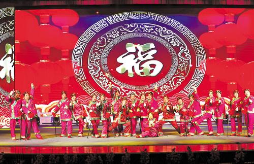 “接下來請(qǐng)大家欣賞秧歌舞蹈!”隨著主持人的介紹,高鳳花等19位演員走上舞臺(tái)。