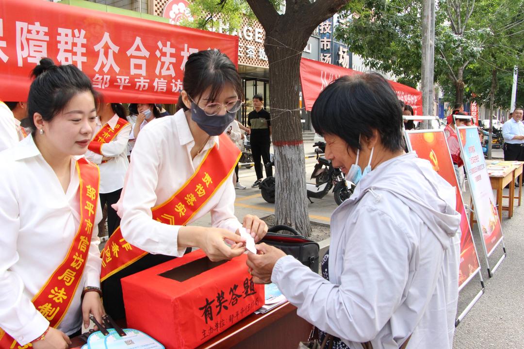 濰坊市信訪局聯(lián)合32個(gè)市直部門,威海市區(qū)兩級(jí)信訪部門聯(lián)合鎮(zhèn)街,日照市縣鄉(xiāng)三級(jí)信訪干部、基層網(wǎng)格員、社區(qū)工作者、法律志愿者,以及德州、濱州等地有關(guān)部門,也紛紛在當(dāng)?shù)氐幕顒?dòng)現(xiàn)場(chǎng)通過(guò)懸掛宣傳橫幅、擺放宣傳展臺(tái)、設(shè)置宣傳看板、發(fā)放宣傳手冊(cè)等形式,向過(guò)往群眾普及信訪工作法治化常識(shí),并就群眾關(guān)心的信訪相關(guān)問(wèn)題進(jìn)行了現(xiàn)場(chǎng)答疑,讓群眾對(duì)信訪工作有更深入的了解,引導(dǎo)群眾依法理性表達(dá)訴求。