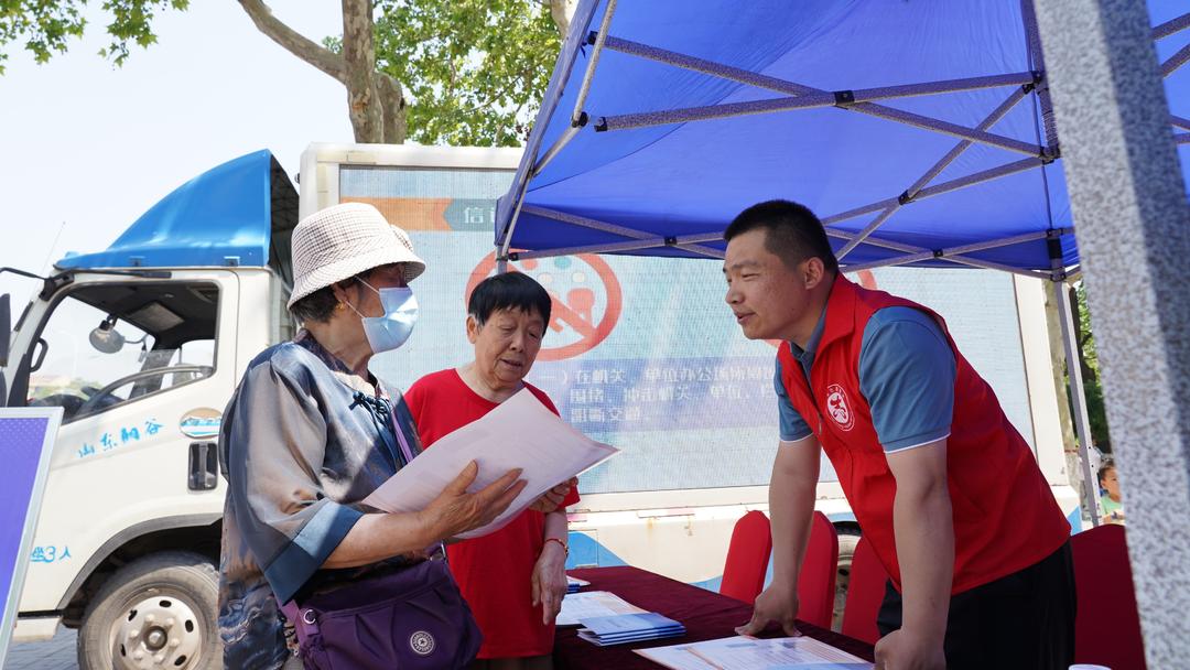 “我們這個(gè)展位是濟(jì)南市信訪的一個(gè)業(yè)務(wù),叫‘全程幫辦隨訪連線’,主要是為了聯(lián)系現(xiàn)場(chǎng)群眾,確保群眾反映的問(wèn)題能夠一次性化解。今天我們來(lái)到現(xiàn)場(chǎng)也是為了宣傳《信訪工作條例》,幫助群眾樹立依法信訪的意識(shí)?!睗?jì)南市信訪局信訪信息一體化中心的工作人員董坤介紹。