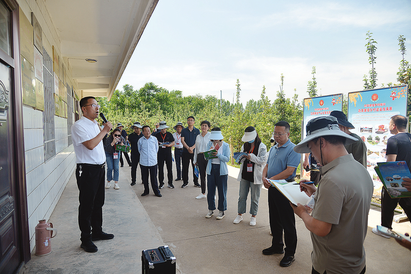 鳳翔區(qū)范家寨鎮(zhèn)鎮(zhèn)長(zhǎng)張革新(左)介紹相關(guān)情況