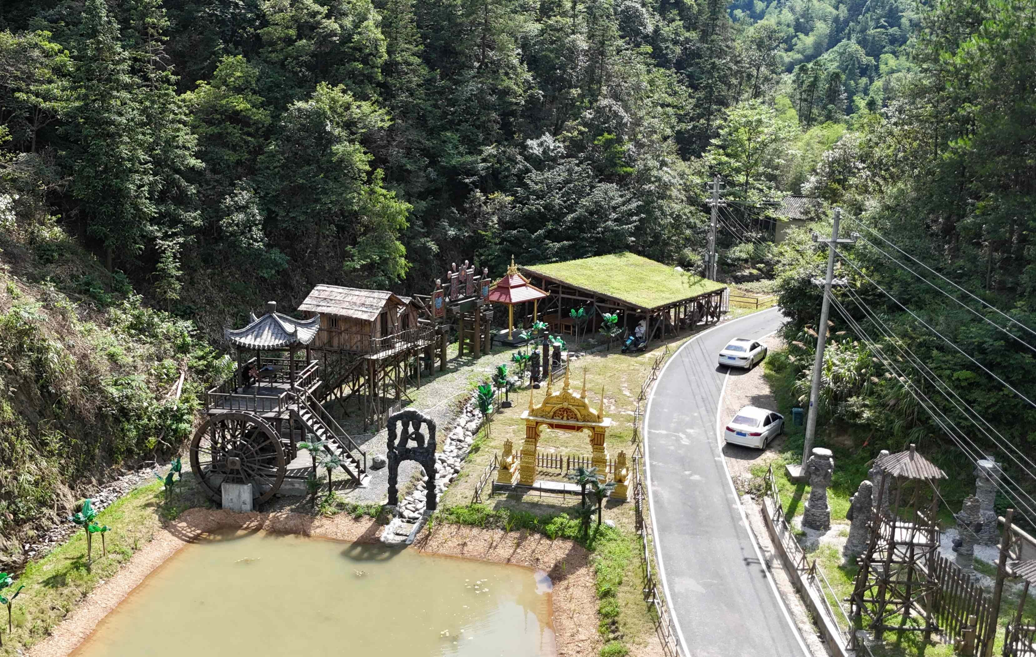走進(jìn)紅光村的方坑嶺強(qiáng)鄉(xiāng)富村影視基地,東南亞風(fēng)格建筑和古代宮廷場景仿佛讓人穿越。在這里,不到一年的時間已經(jīng)拍了4部電影和8部短劇,小山村儼然成了“劇工廠”。