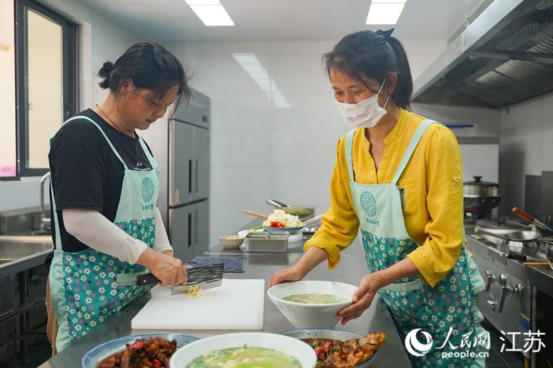 姜下村民宿廚房?jī)?nèi),村民正在制作本地美食 郜超 攝