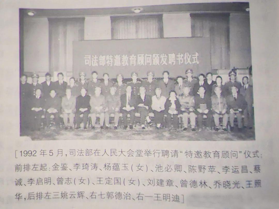 1992年5月,司法部會(huì)同中國關(guān)心下一代工作委員會(huì),聯(lián)合聘請(qǐng)陳野蘋、曾志、王照華、池必清、喬曉光、李啟明、李運(yùn)昌、劉建章、何光、曾德林、楊蘊(yùn)玉、張文松、李琦濤、王定國等十四位老同志擔(dān)任“司法部特邀教育顧問”,并在人民大會(huì)堂舉行了隆重的頒發(fā)聘書儀式。在這批德高望重的革命前輩的熱情參與下,監(jiān)獄管理機(jī)關(guān)的教育改造質(zhì)量和社會(huì)影響力有了新的提升。由于工作原因,我有幸親歷和見證了他們到監(jiān)獄開展幫教活動(dòng)的一幕幕感人至深的場(chǎng)景。