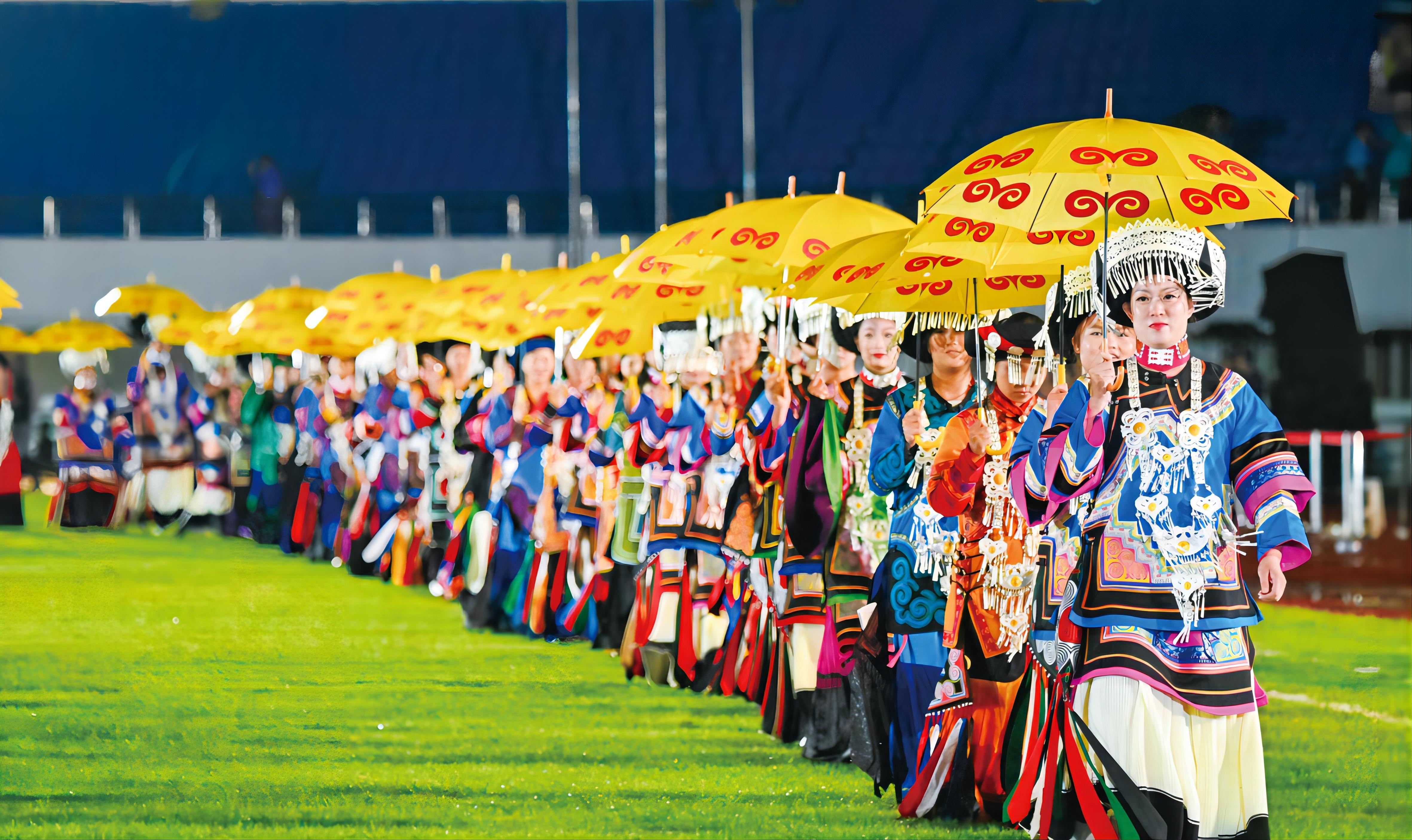 抖音足球嘉年華現(xiàn)場彝族服飾展演(西昌市文化廣播電視和旅游局供圖)
