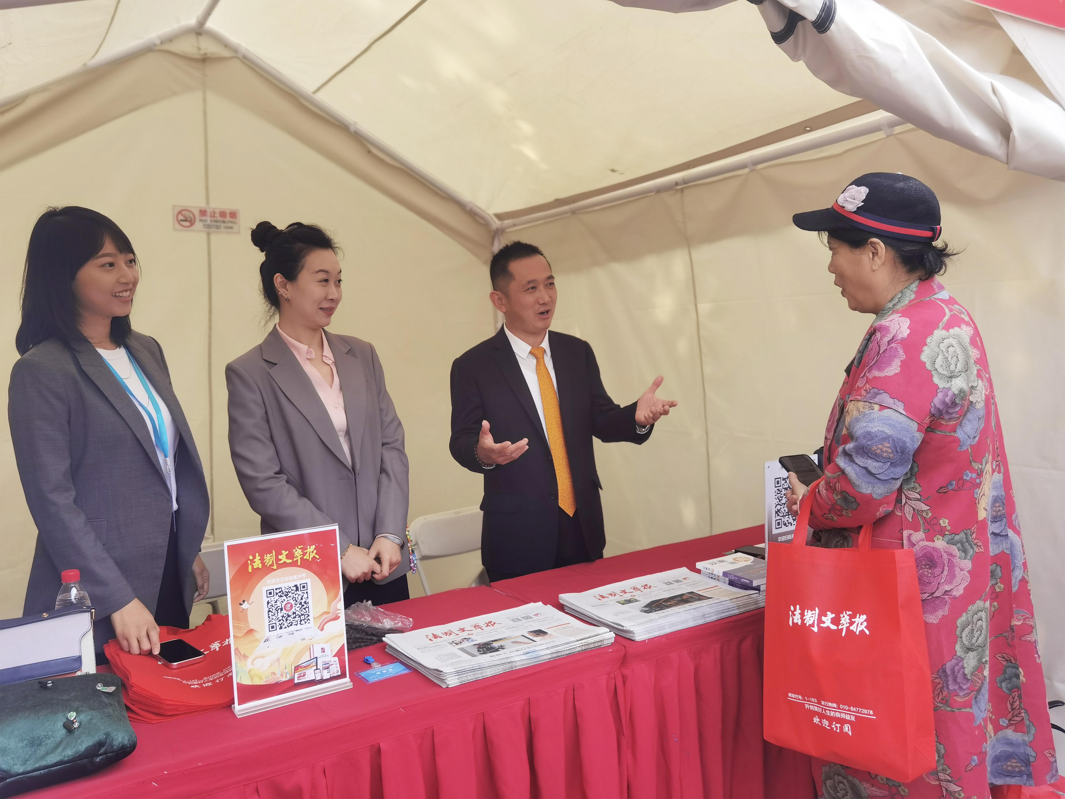本次活動以“共‘郵’金秋·閱向未來”為主題,旨在集中展示報刊出版發(fā)行的豐碩成果,掀起全民閱讀熱潮,濃郁首都書香氛圍,彰顯首都文化力量。在200余家全國最具影響力的報刊社和出版社中,“始終以專業(yè)的視角、深入的報道,在推動法律知識普及、提升公眾法治意識方面做出積極努力,對法治建設做出卓越貢獻”的法制文萃報應邀參加活動,并在現(xiàn)場設立法律咨詢、有獎問答、專家講座等普法活動。