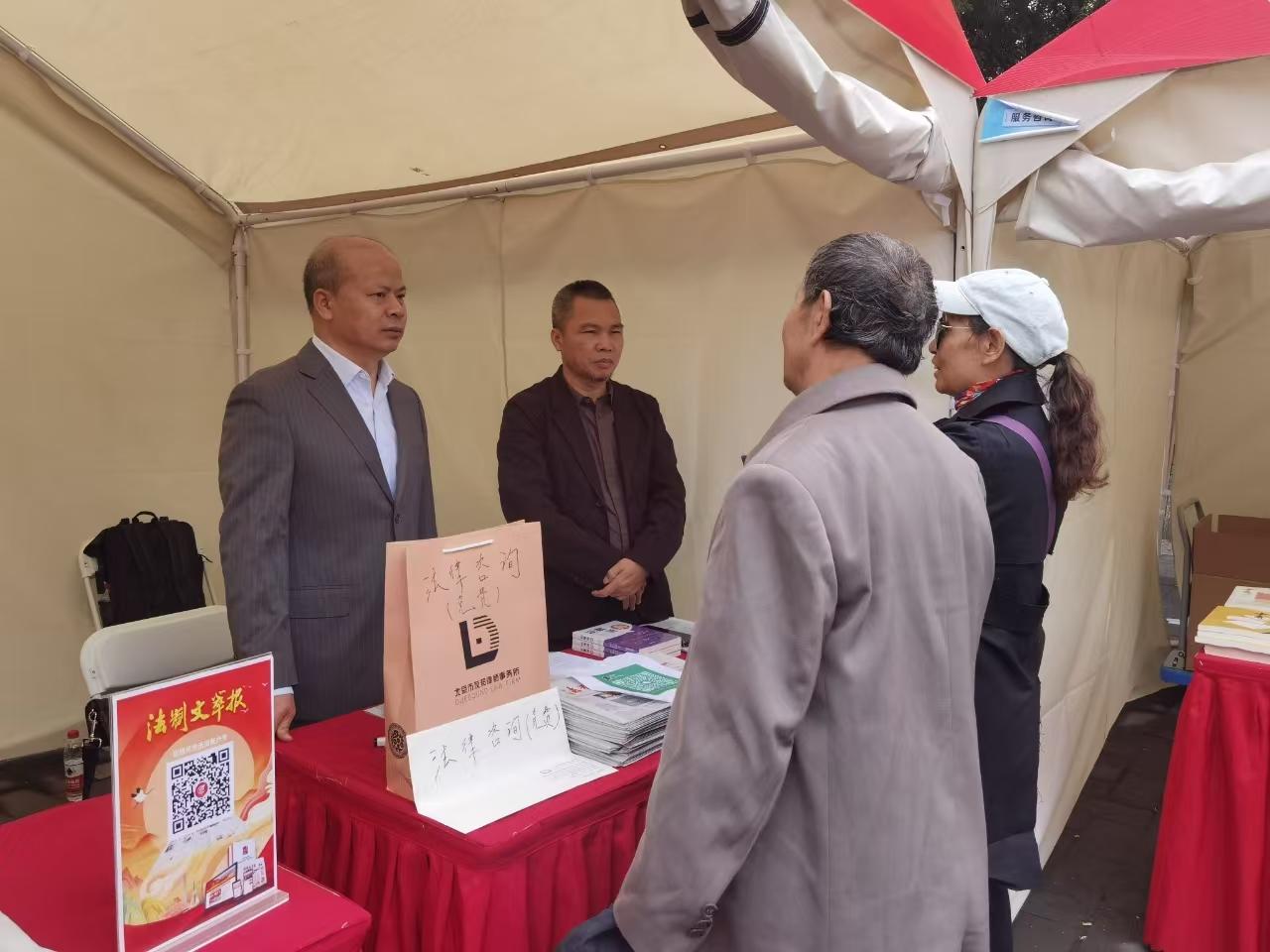 近年來,隨著我國社會人口老齡化程度不斷加深,涉及老人權益案件日益增多?;顒悠陂g,法制文萃報邀請了全國優(yōu)秀律師、法學博士后、中國法學會律師法學研究會副會長李學輝,安理律師事務所律師李婍婧、律師助理王澍楠,安博律師事務所合伙人鄭斌、李賀鳳律師,北京市友邦律師事務所副主任、高級合伙人熊旭律師,廣東鼎寧律師事務所主任楊振學律師,開展了為期三天的現(xiàn)場法律咨詢。為老年人提供涉及房產糾紛、遺產繼承、動拆遷等相關法律的解答,受到了游園群眾的一致好評。