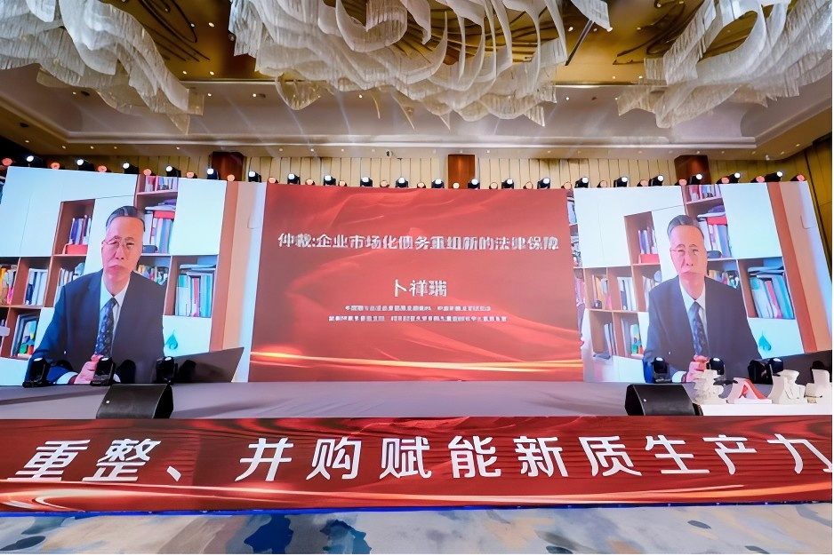 中國銀行業(yè)協(xié)會原首席法律顧問、中國仲裁法學研究會金融仲裁專委會主任、對外經(jīng)貿(mào)大學并購與重組研究中心首席專家卜祥瑞的發(fā)言題目為《仲裁:企業(yè)市場化債務重組新的法律保障》。卜祥瑞主任分析了仲裁在市場化債務重組中的作用,深入探討了仲裁機制如何為企業(yè)提供更加靈活、高效的爭議解決方案。他還分享了在當前經(jīng)濟環(huán)境下,企業(yè)如何利用仲裁手段優(yōu)化債務結(jié)構(gòu),降低重組成本,從而保障債權(quán)人和債務人權(quán)益的同時,維護金融市場的穩(wěn)定。最后,他提出在重整并購過程中,仲裁作為一種非訴訟解決爭議的方式,如何與司法程序相輔相成,共同促進企業(yè)債務重組順利進行的解決思路。