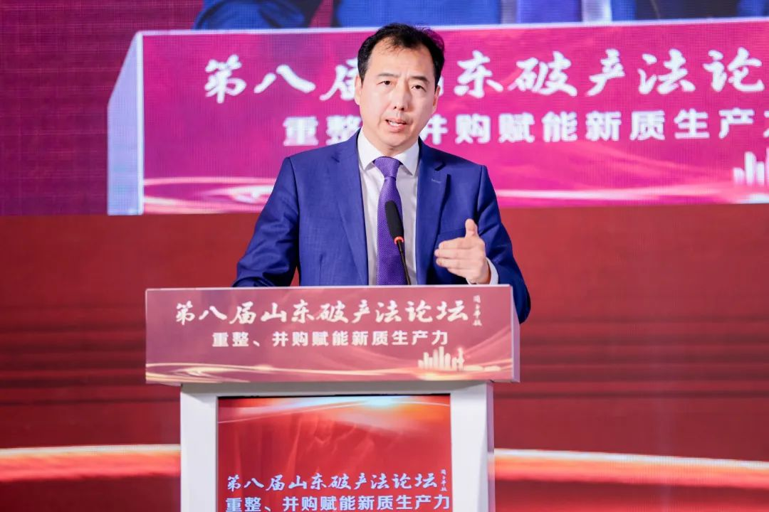 2024年11月10日,第八屆山東破產(chǎn)法論壇在濟南成功舉辦。本屆論壇由全聯(lián)并購公會、山東金融業(yè)聯(lián)合會、山東省不良資產(chǎn)處置協(xié)會、山東大學交叉法學研究院、浙江工商大學破產(chǎn)重組研究院、山東省法學會企業(yè)破產(chǎn)與重組研究會聯(lián)合主辦。本屆論壇緊緊圍繞“新質(zhì)生產(chǎn)力”的深刻內(nèi)涵,聚焦“重整并購賦能新質(zhì)生產(chǎn)力”這一核心主題展開研討。山東法學會企業(yè)破產(chǎn)與重組研究會名譽會長、山東省高級人民法院原院長周玉華;全國工商聯(lián)第十三屆常委、全聯(lián)并購公會會長尉立東;山東金融業(yè)聯(lián)合會秘書長何修崟;山東省不良資產(chǎn)處置協(xié)會會長李薇華;中國法學會世界貿(mào)易組織法研究會副會長兼秘書長、中國人民大學特聘教授石靜霞;華東政法大學國際金融法律學院教授、浙江省高級人民法院原民二庭庭長章恒筑出席開幕式。山東省法學會企業(yè)破產(chǎn)與重組研究會會長劉平主持開幕式。全國工商聯(lián)第十三屆常委、全聯(lián)并購公會會長尉立東,山東省不良資產(chǎn)處置協(xié)會會長李薇華在開幕式上致辭演講。6位主旨演講嘉賓、28位主題演講嘉賓圍繞各主題、議題,展開了為期一天的深入研討。全聯(lián)并購公會副會長、山東省法學會企業(yè)破產(chǎn)與重組研究會副會長兼秘書長、山東華信清算重組集團有限公司董事長提瑞婷作閉幕致辭。