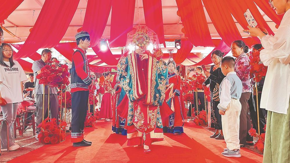 永定土樓景區(qū)在“土樓有喜”劇場內開展客家婚俗表演(永定區(qū)融媒體中心供圖)
