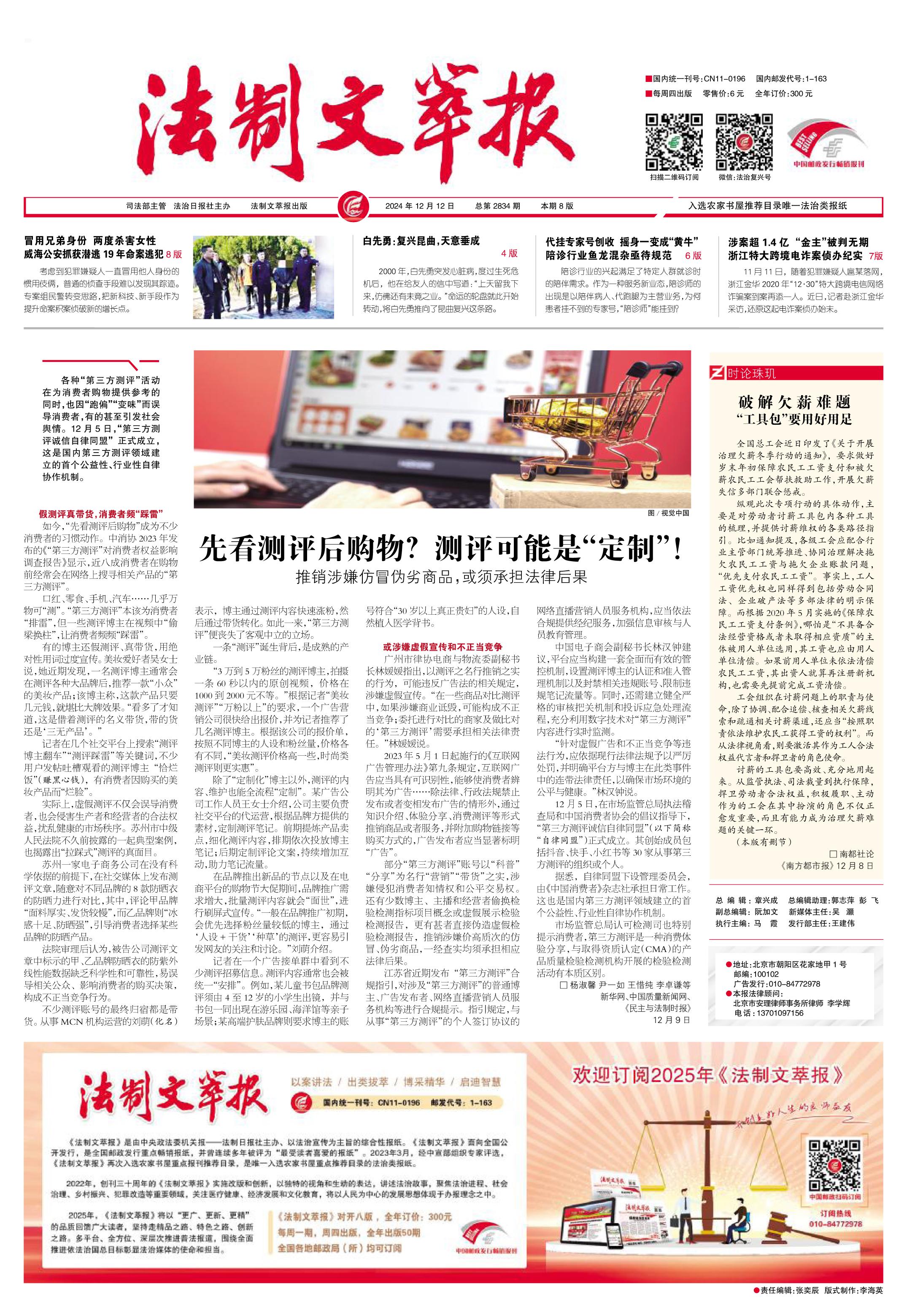 2024年12月12日《法制文萃報》總第2834期1版