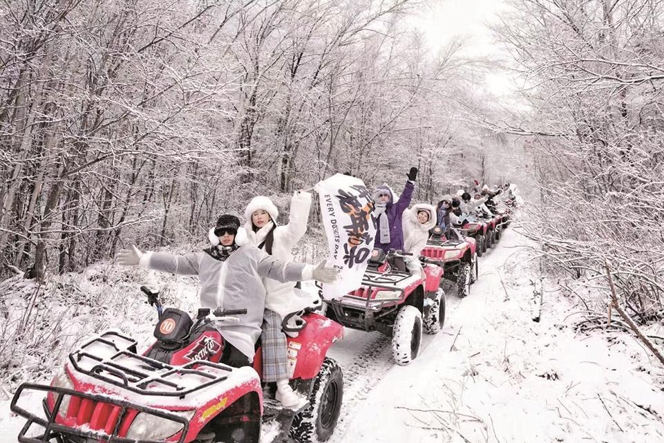 年輕游客開著全地形越野車,奔向山林;小朋友坐在色彩鮮艷的滑雪圈里,從雪坡上滑下;伴隨著“咯吱咯吱”的聲音,馬拉爬犁在雪地上緩緩前行,游客愜意地欣賞著周圍的雪景?!罢婷腊?,這里除了有令人嘆為觀止的冰雪景觀,還有豐富多樣的冰雪項目,可以盡情享受一番?!北本┯慰屠钕壬f。