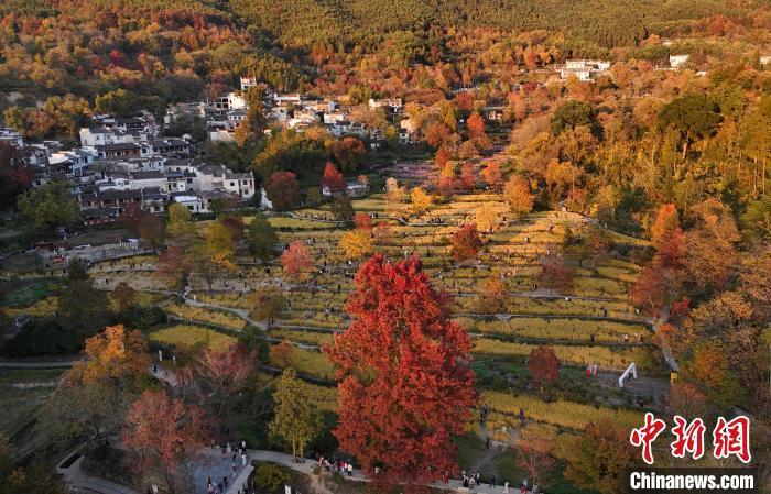 2024年11月11日,初冬時節(jié),黃山市黟縣塔川村景色斑斕。(無人機照片)記者 韓蘇原 攝