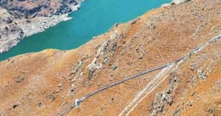 仁和區(qū)平地鎮(zhèn)迤沙拉村,輸水管道需翻越1200米長(zhǎng)的陡坡才能實(shí)現(xiàn)引水上山(水利廳供圖)