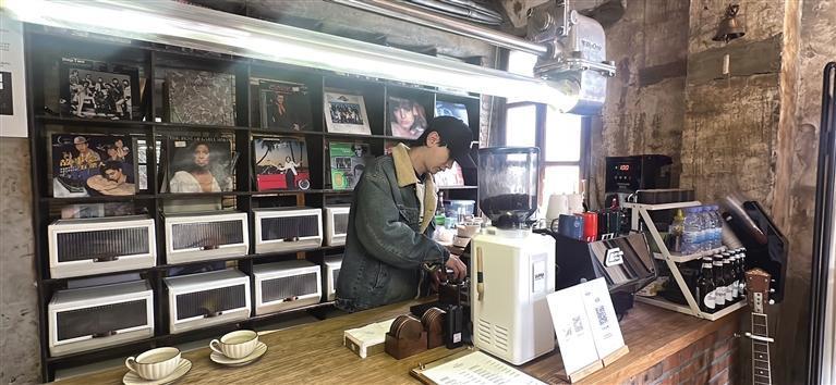 2月6日,漁灣村“鹿柴咖啡”經(jīng)營者周智天在制作咖啡