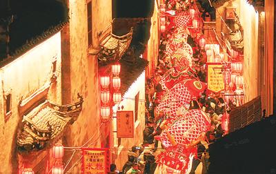 春節(jié)期間,抖音和安徽歙縣聯(lián)合推出魚燈IP,特色民俗表演吸引了眾多游客。抖音公益供圖