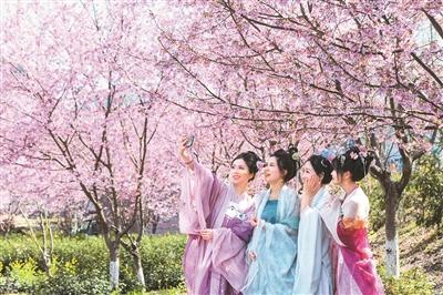 在四川省成都市舉辦的“花朝霓裳·錦繡春行”春日文旅活動(dòng)上,市民游客穿著漢服踏青賞花,沉浸式體驗(yàn)非遺市集、中醫(yī)藥文化;上海靜安區(qū)大寧公園以“花朝春時(shí),香郁良辰”為主題,以郁金香、櫻花、海棠、白玉蘭的天然花期作序,借十二花神華服巡游,展示古風(fēng)國(guó)韻;湖南長(zhǎng)沙在世界之窗建造百畝牡丹花海,將電視劇《國(guó)色芳華》從熒屏搬到現(xiàn)實(shí),人們紛紛身著唐風(fēng)服飾打卡拍照;位于湖北武漢的東湖風(fēng)景區(qū)推出了水陸賞櫻游線,游客身著各式傳統(tǒng)服飾,沿著《楚辭》里的滄浪亭、行吟閣體驗(yàn)荊楚春意。