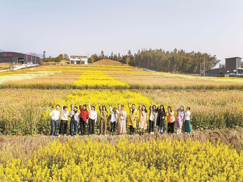 “三八”國(guó)際婦女節(jié)期間,游客在石陂鎮(zhèn)申明村油菜花田拍照留念。柳良金 攝