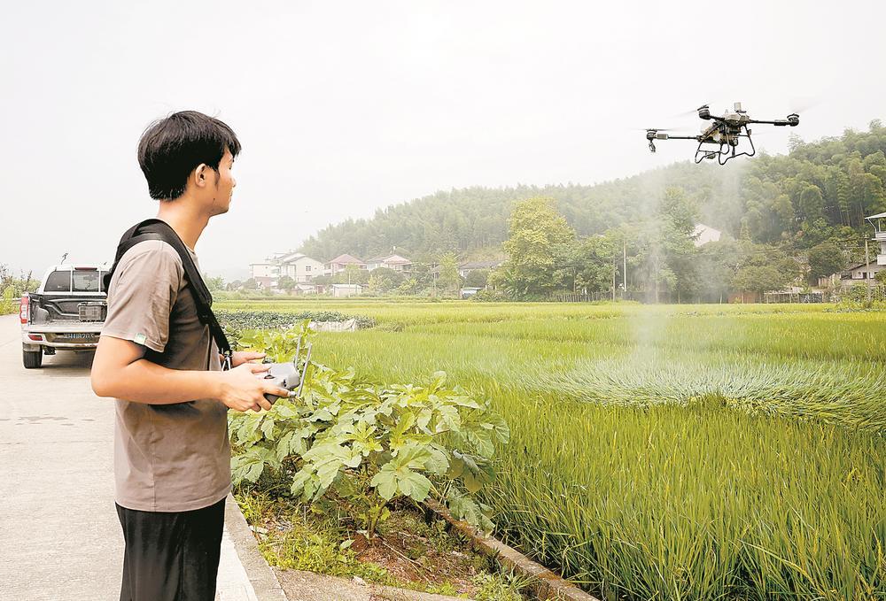“現(xiàn)在用無(wú)人機(jī),每天能完成幾百畝的飛防作業(yè),扣除發(fā)電、無(wú)人機(jī)折舊等成本,一天收入近1000元?!毕申?yáng)鎮(zhèn)鐿杭家庭農(nóng)場(chǎng)負(fù)責(zé)人王鐿杭說(shuō),他今年23歲,不僅自己種糧,還和其他無(wú)人機(jī)、收割機(jī)、插秧機(jī)機(jī)手一起,為周邊鄉(xiāng)鎮(zhèn)的種糧大戶提供服務(wù)。