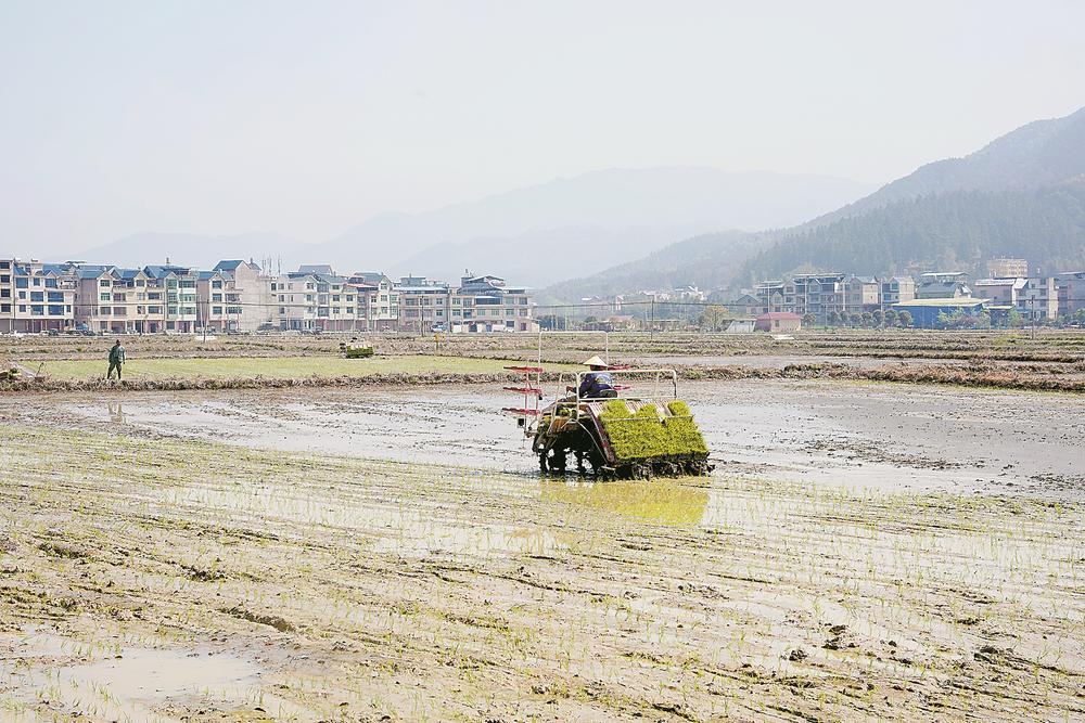 插秧機(jī)在田間插秧。柳浪漫 攝