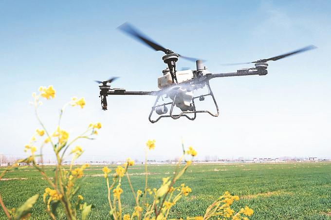 3月24日,在建湖顏單鎮(zhèn)的田間地頭,綠色麥苗生機(jī)勃勃,長(zhǎng)勢(shì)喜人。四四方方的無人機(jī)只需遙控器輕輕一點(diǎn),就能躍上低空施肥打藥,為打好春季麥田管理“第一仗”作出突出貢獻(xiàn)。