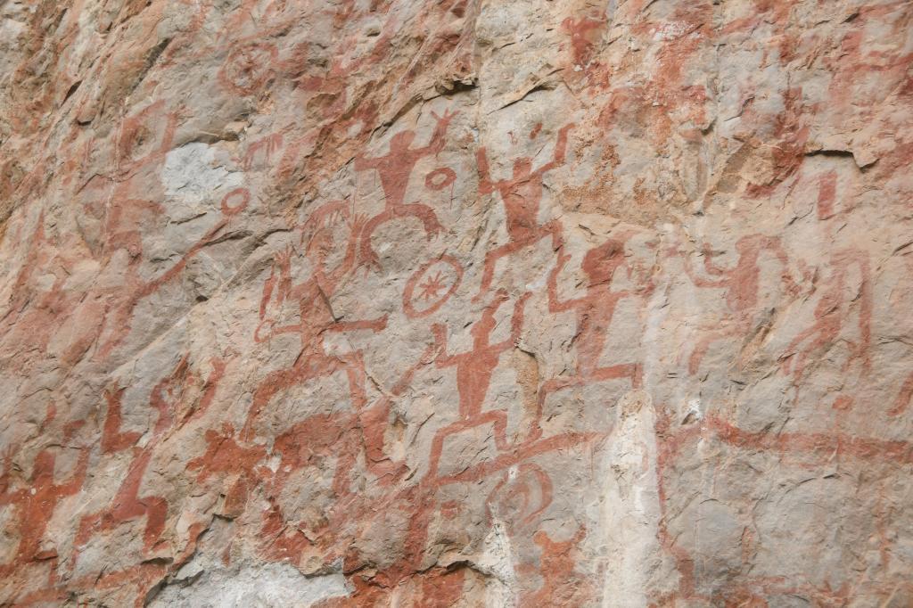景區(qū)講解員介紹,花山巖畫(huà)面積8000多平方米,有各種圖像1900多個(gè),創(chuàng)作于戰(zhàn)國(guó)至東漢時(shí)期,距今已有兩千多年的歷史。2016年被列入《世界遺產(chǎn)名錄》,填補(bǔ)了中國(guó)巖畫(huà)類(lèi)世界遺產(chǎn)空白。