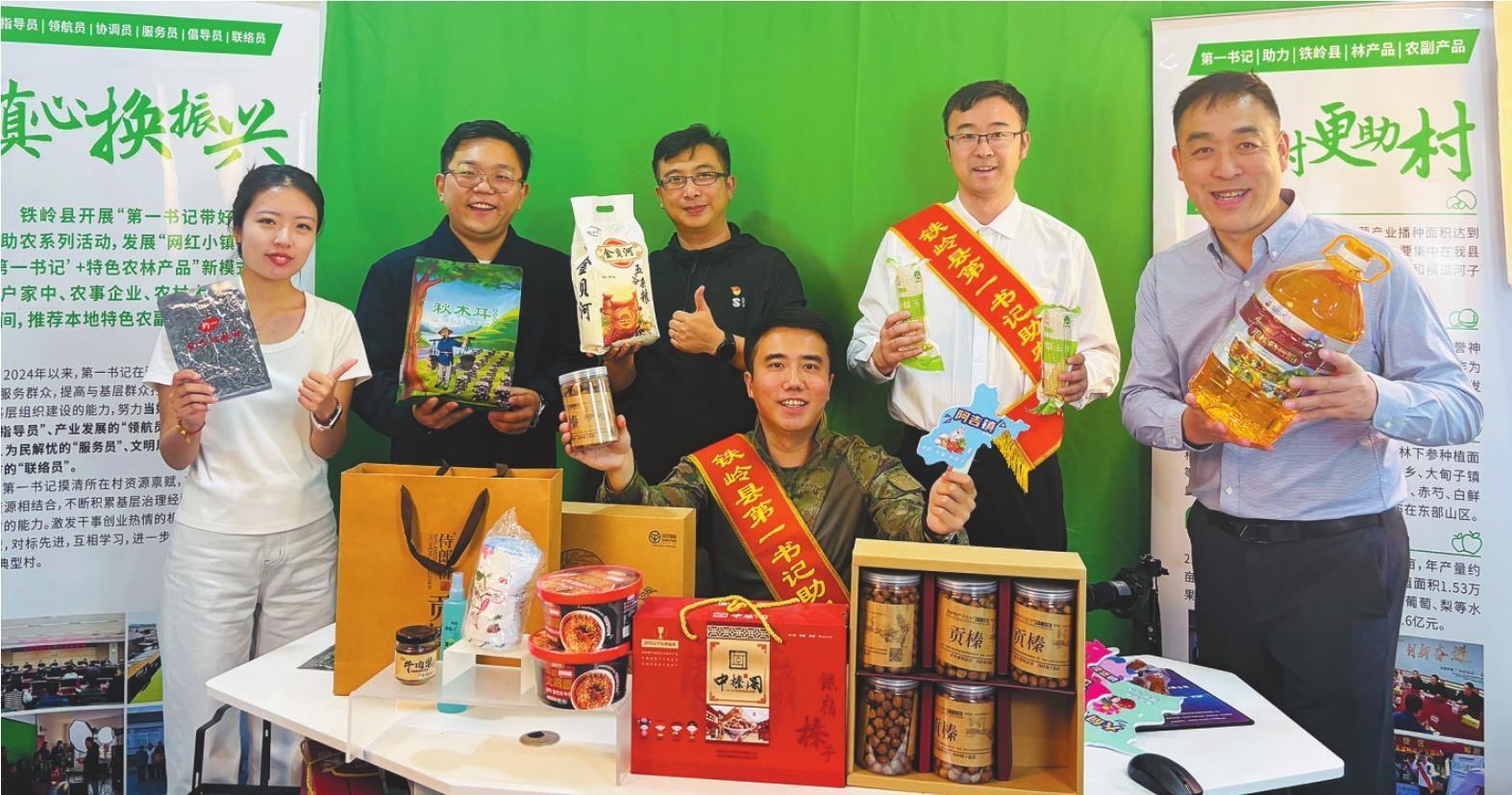 鐵嶺市第一書記電商聯(lián)盟部分成員共同在線上推介當?shù)靥厣r產品。