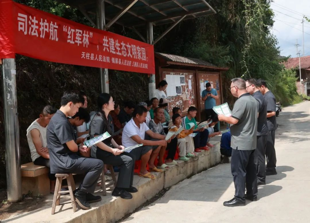 隨后,一場別開生面的“院壩圍讀”在村寨中展開。黨員干警們結(jié)合《古樹名木保護(hù)條例》,用方言土語向村民們講解古樹名木的定義、分級標(biāo)準(zhǔn),以及保護(hù)古樹對維護(hù)生態(tài)平衡、留存歷史記憶的重要意義,引導(dǎo)群眾主動參與到古樹名木的保護(hù)與傳承中來,共同筑牢生態(tài)保護(hù)的群眾基礎(chǔ)。